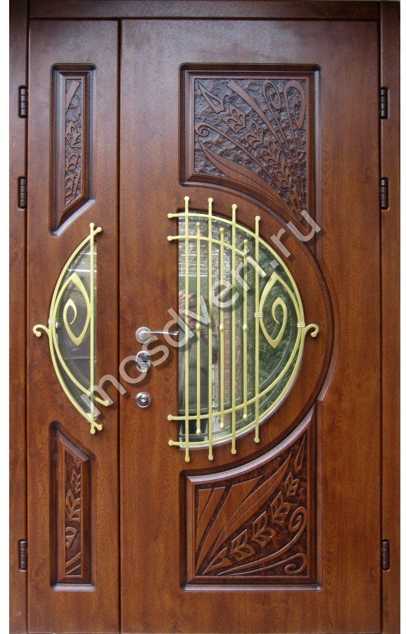 Двустворчатая терморазрывная дверь с утеплением и отделкой массивом для коттеджа — оформите заказ уже сегодня! Позвоните нам, и получите бесплатную консультацию за несколько минут. Бесплатный замер — по вашему графику!